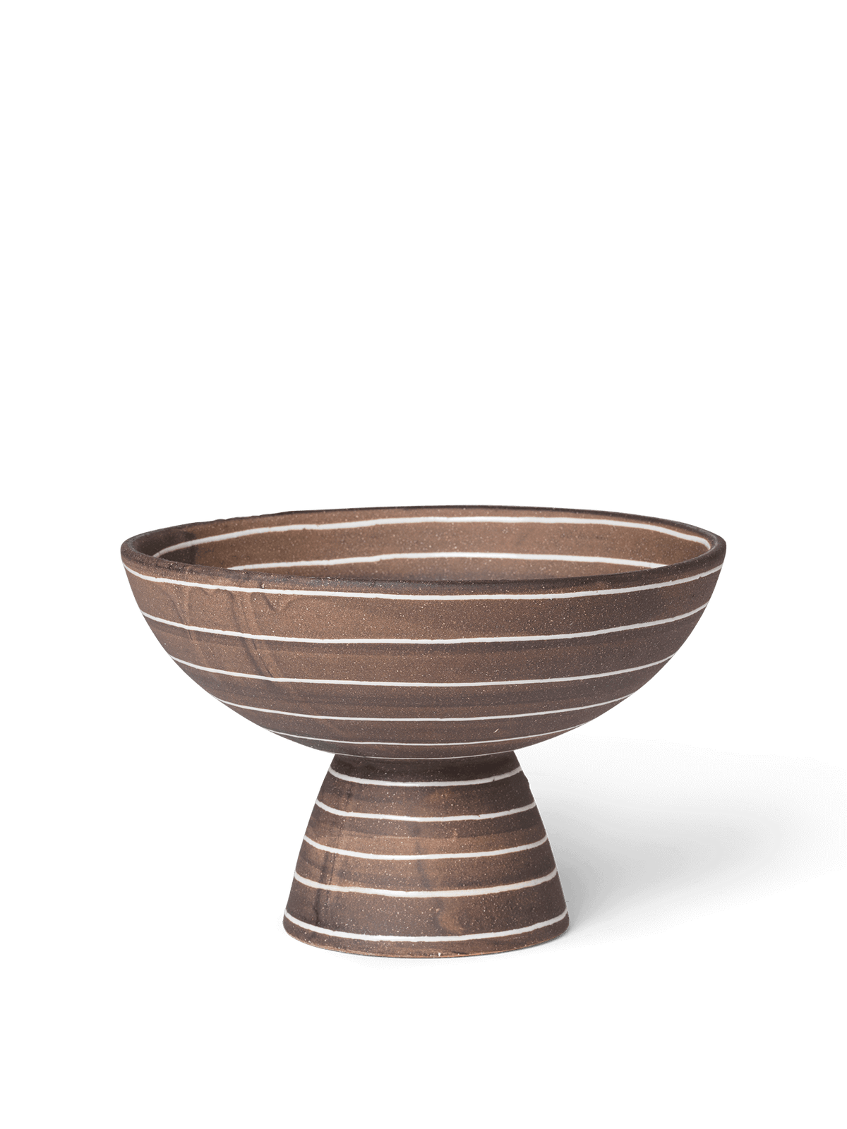 The Brura Bowl offers a warm, tactile expression, making it a captivating centre piece for any living space. Crafted from terracotta, the piece exudes rustic elegance, enhanced by a coffee-coloured glaze that lends a sense of depth and richness. Hand-painted white stripes create a striking contrast, accentuating the bowl's unique shape and enhancing its visual appeal. Whether artfully displayed on a dining table, kitchen counter, or sideboard, the bowl will instantly elevate its contents.