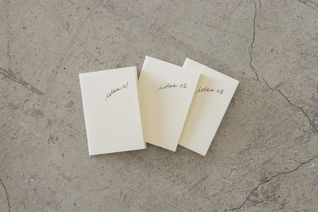 MD Notebook Light comes in a set of 3, each with 48 pages.  Whether you use them one at a time or use each one for a different purpose, this compact package is designed to be flexible enough to suit your needs.  This slim, light notebook allows you to write down ideas instantly.  The new A7 size fits in your palm, pocket or bag so that you can pull it out and take notes any time, ensuring that it is close at hand when inspiration strikes.  You can even fold the pages all the way around and hold it in one hand, allowing you to write while standing.