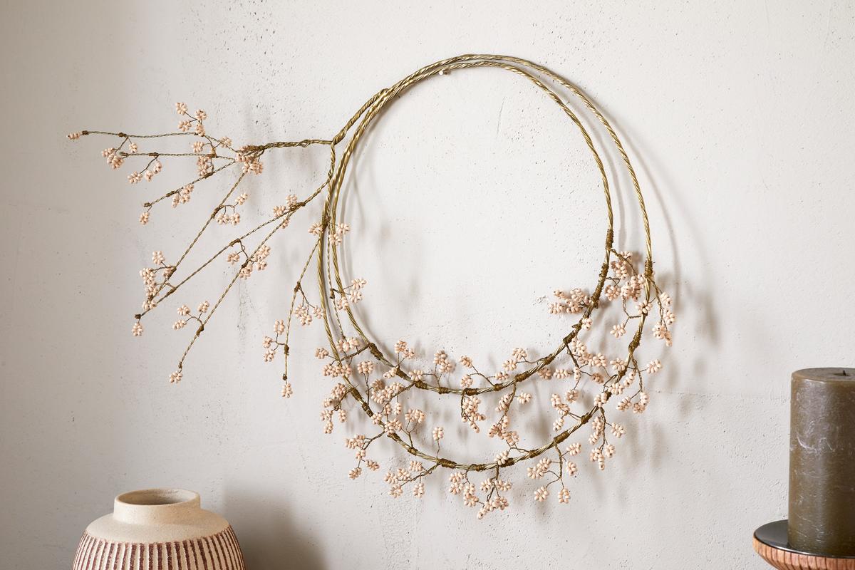 Tanu Layered Mango Wood Beaded Wreath - Brass & Natural
