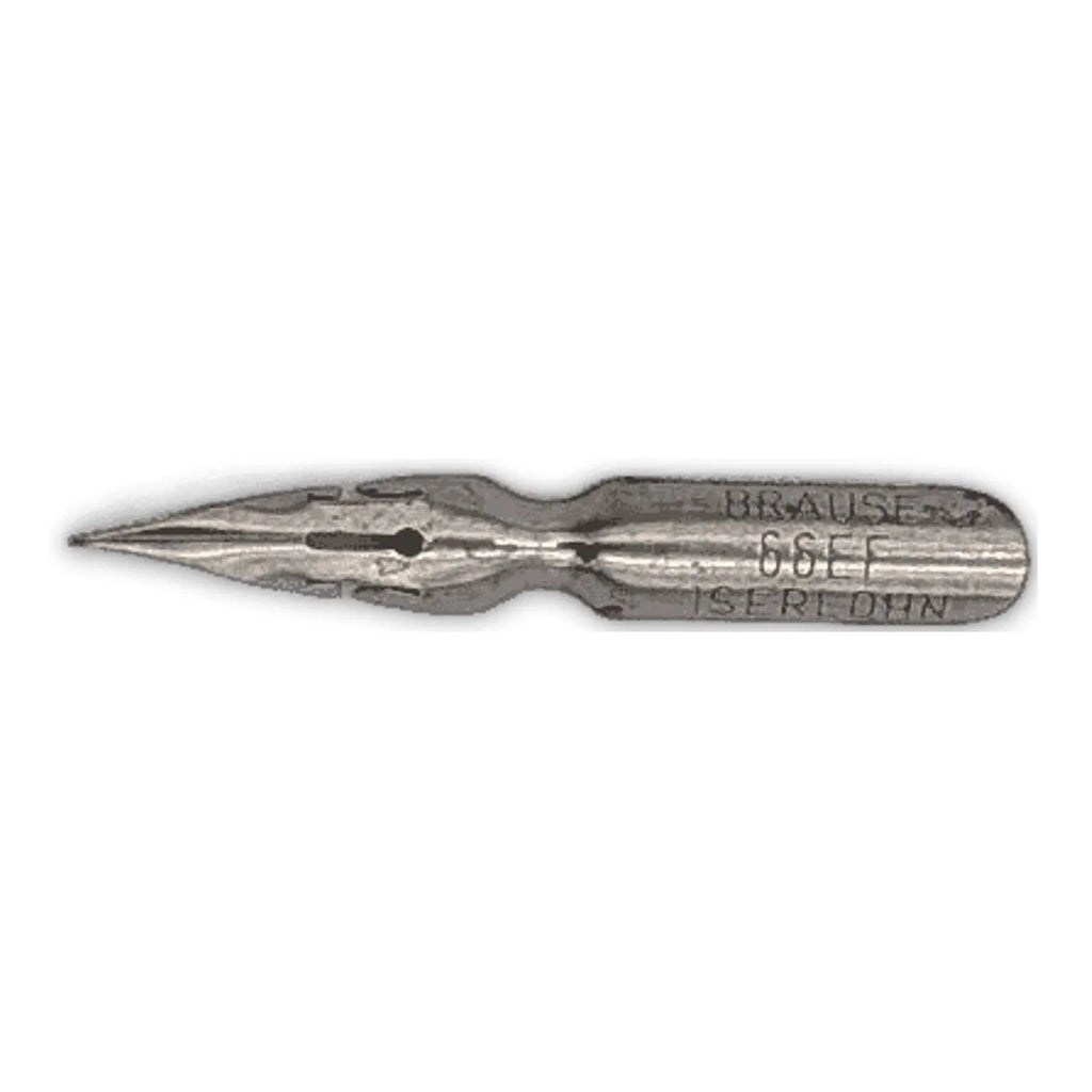 The 66 EF is a highly elastic small nib with an extra fine point. It has a high ink capacity and a very smooth reaction. It is very flexible and a popular choice for Copperplate and Modern Calligraphy. The 66EF nib is a smaller sized nib, than most Made by Brause of Iserlohn.
