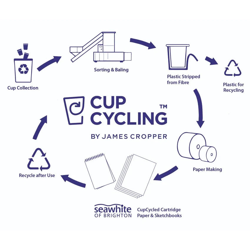 CupCycling™ Cartridge shares much of Seawhite All-Media’s DNA. It has outstanding tensile and tear strength and the surface is furnished to withstand an eraser. It  has the body and tooth to work well with the widest range of media and techniques. Yet at 140gsm, it outperforms much heavier papers.  It has 80% recycled content and offers you the best of all worlds - a fantastic product for artists and students that also helps reduce the amount of plastic sent to landfill.