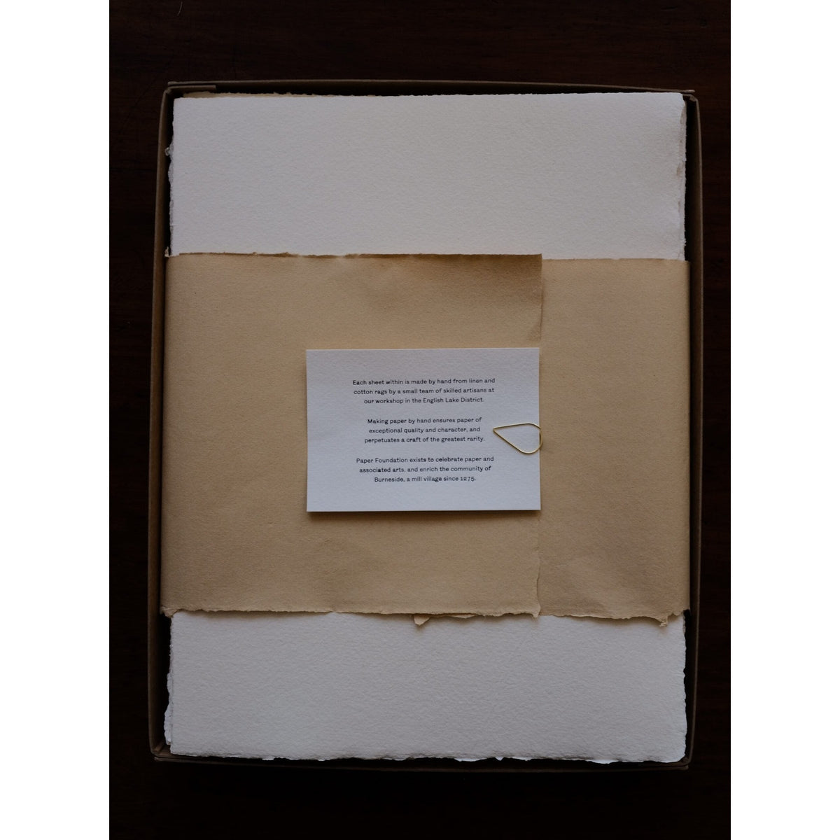 All the papers are handmade by a small team of skilled artisans at a paper mill in the Lake District. Making paper by hand—and using only the finest fibres—ensures exceptional quality, character, and a truly distinctive surface.