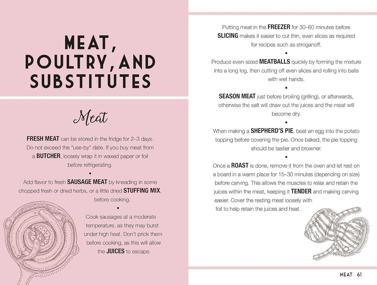 An indispensable guide to hundreds of foolproof techniques to elevate your culinary skills, from mastering precise chopping methods to creating rich, flavourful stocks. Designed for easy browsing, this essential kitchen companion is perfect for complete beginners as well as experienced food enthusiasts, offering practical advice on every aspect of cooking, as well as a handy glossary defining some of the most common cookery jargon.