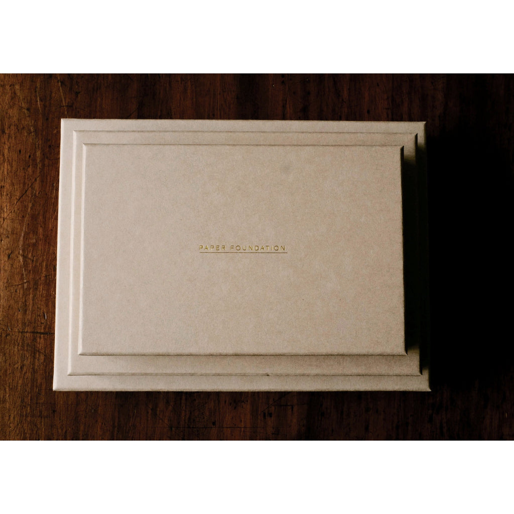 Each book features a cloth cover, handmade coloured endpapers, letterpress printed details, brass binding rings and comes in a beautiful handmade box. Our watermark is blind debossed into the outside of the back cover.