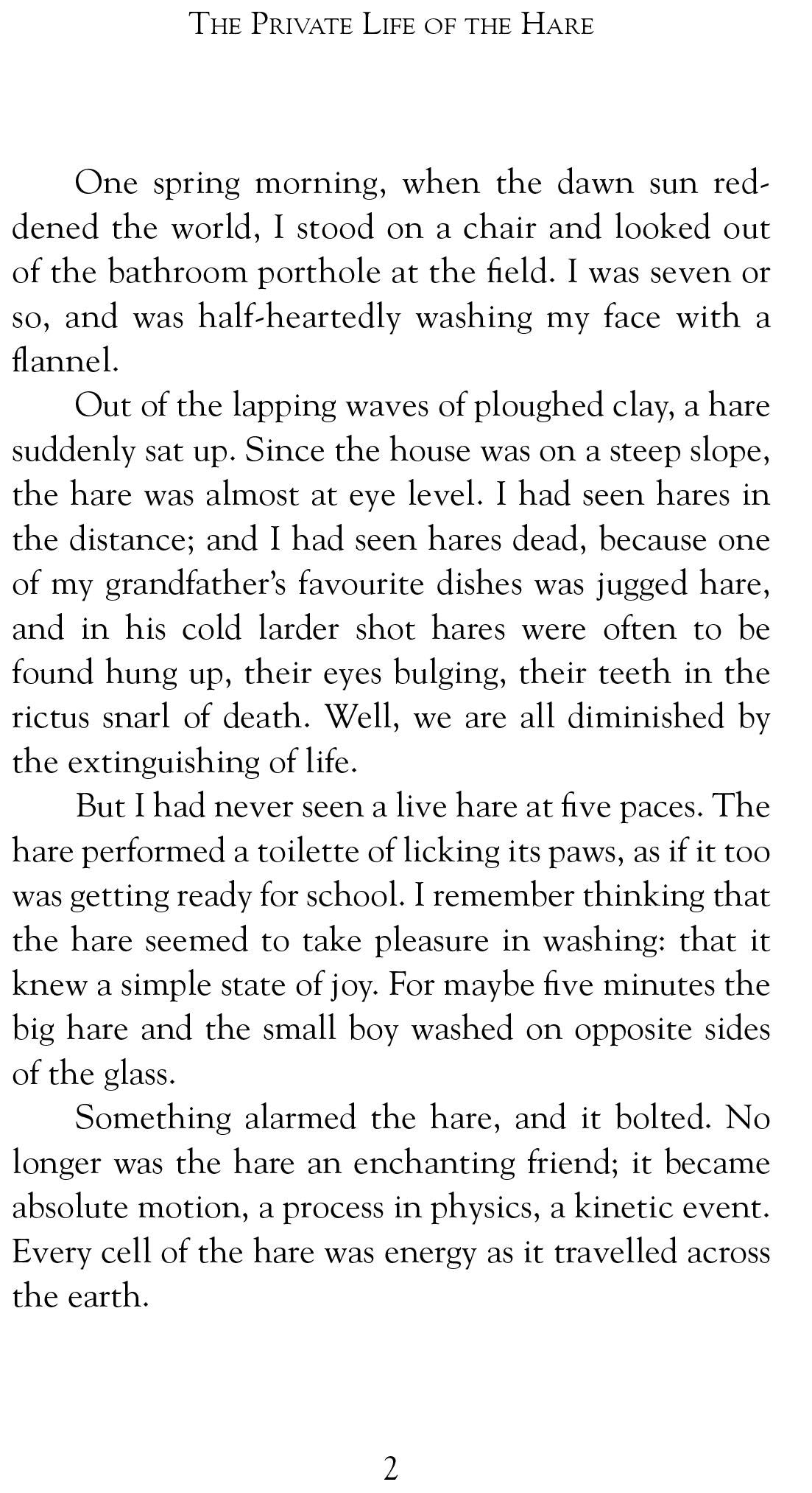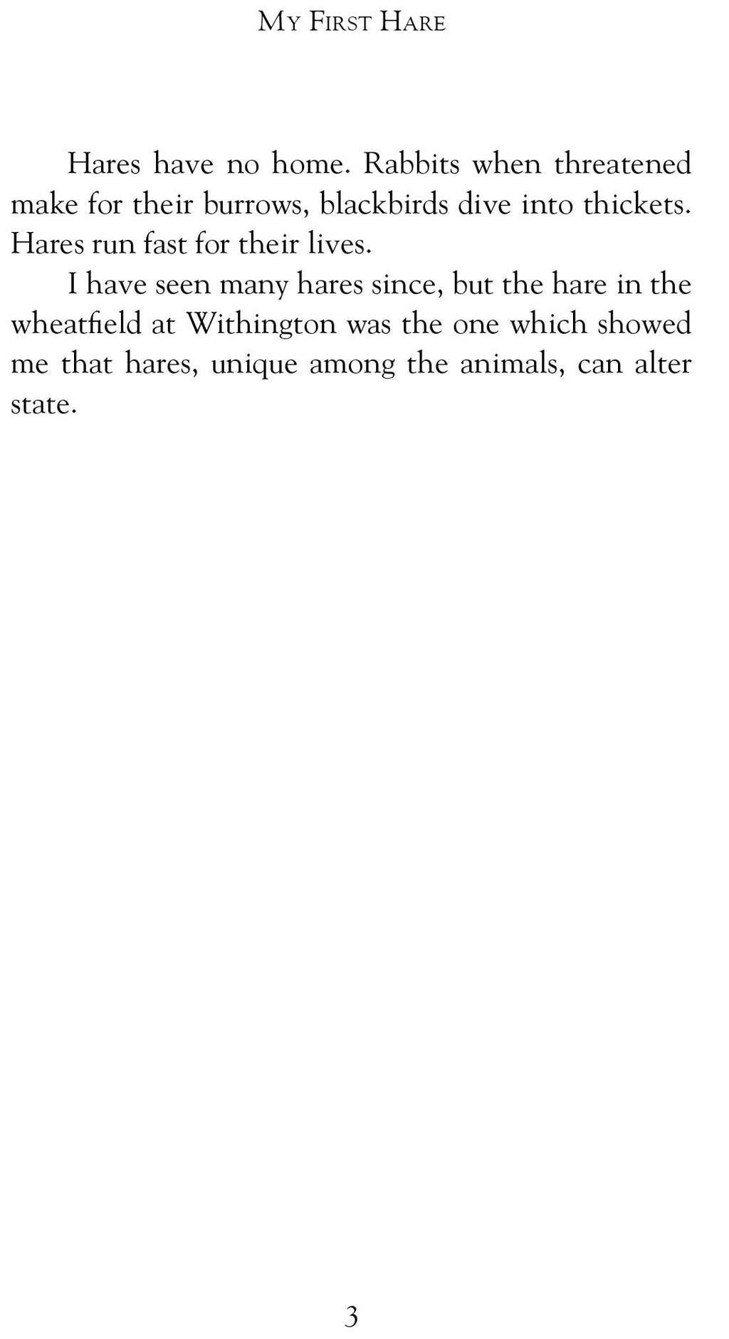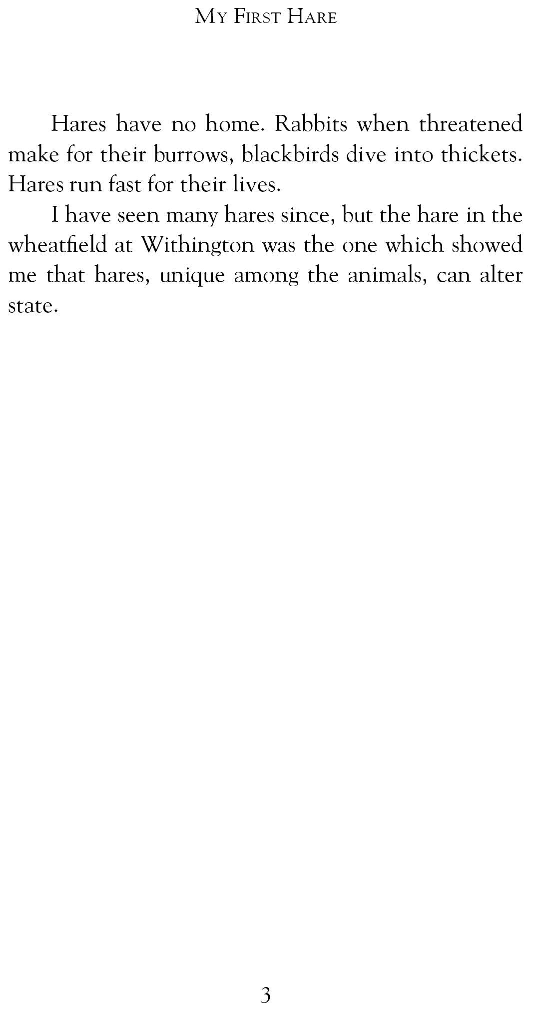 The hare, a night creature and country-dweller, is a rare sight for most people. We know them only from legends and stories. They are shape-shifters, witches' familiars and symbols of fertility. They are arrogant, as in Aesop's The Hare and the Tortoise, and absurd, as in Lewis Carroll's Mad March Hare. In the absence of observed facts, speculation and fantasy have flourished. But real hares? What are they like?