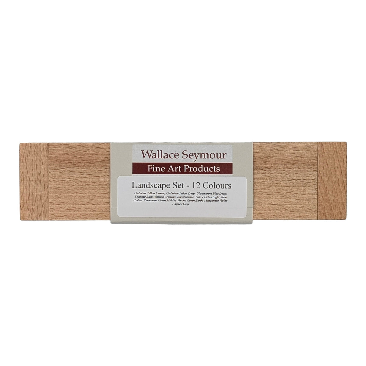 This set of colours which lend themselves to landscape painting are presented in a beautiful handmade wooden box with a small metal clasp, which makes it a pleasure to use as it is weighty enough to stay put for plein air painting but small enough to transport easily.